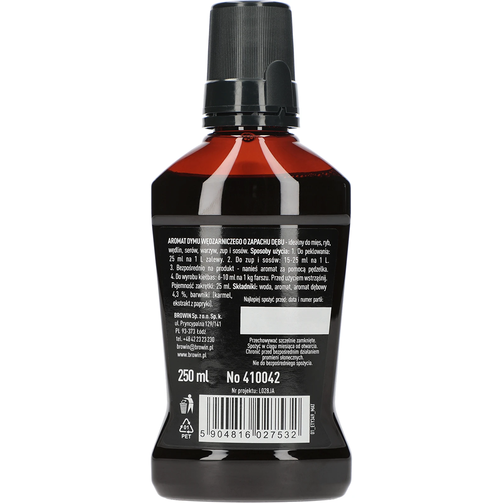 Składniki: woda, aromat, aromat dębowy 4,3%, barwniki (karmel, ekstrakt z papryki).