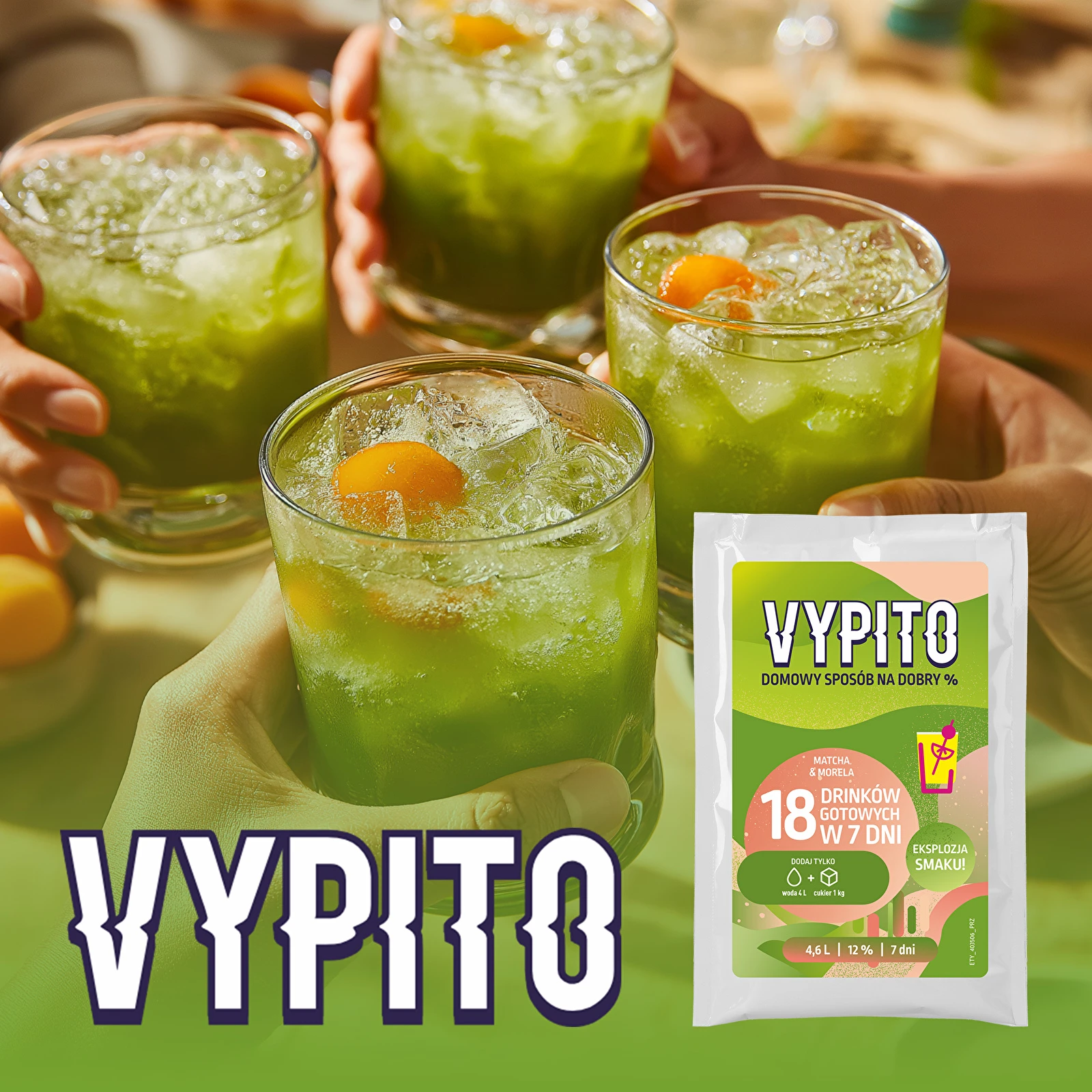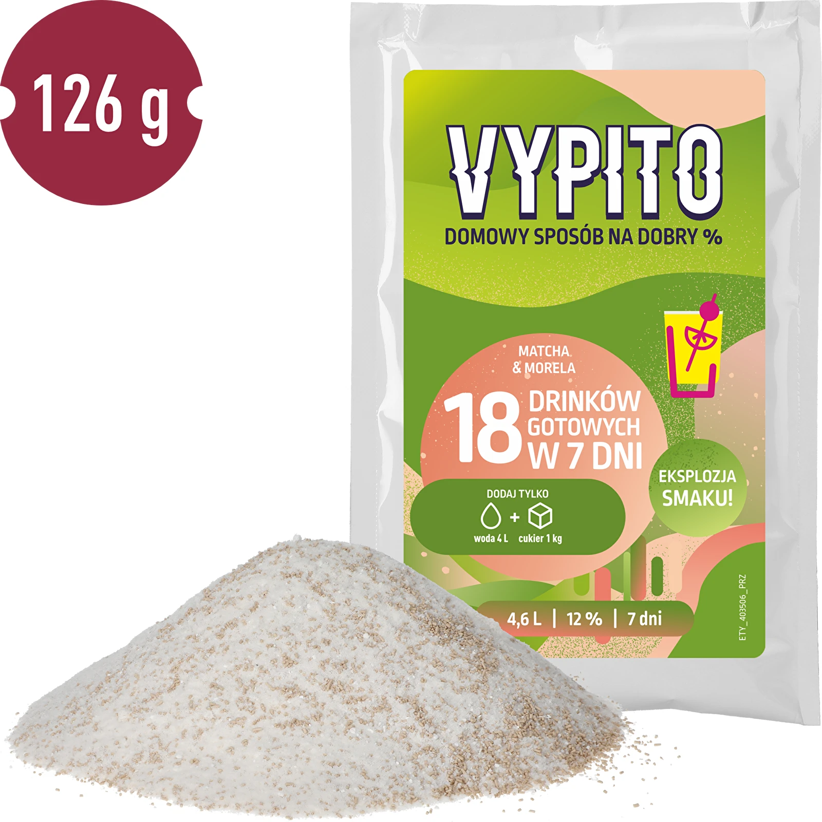 VYPITO Matcha-Morela to gotowa mieszanka, z którą przygotujesz własne napoje alkoholowe w około 7 dni! Prosto, wygodnie i z satysfakcją, że samodzielnie!